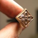 Reliéf je z tvrdé mosazi na ocelovém trnu.