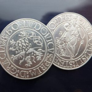 Umělecká replika stříbrné české mince. Ražba je provedena do hliníku. Autorem je medailér Vojtěch Dařbujan.