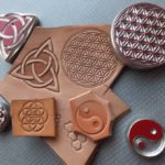 Razidla pro ruční ražbu standardně děláme s kovovým držadlem (vhodná plocha motivu do 6 cm2 ) . Větší motivy doporučujeme lisovat v lisu a k tomu dodáme destičku o síle 7 mm, výška reliéfu 2 mm.