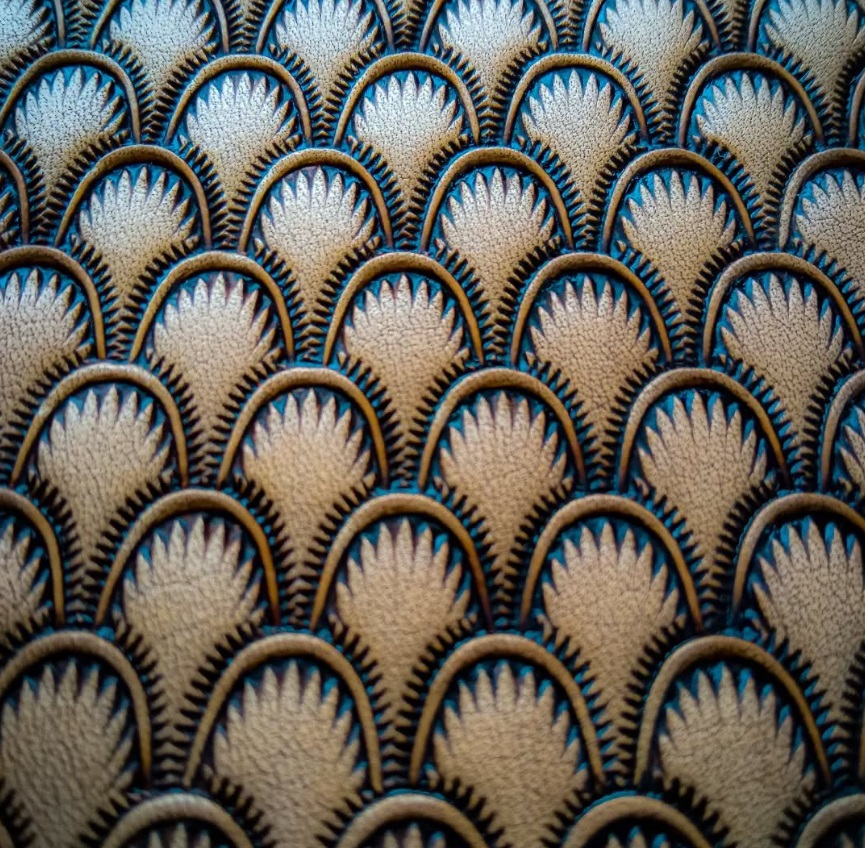 Dračí kůže ruční razidlo je mosazné razidlo s plastickým motivem oblouku. Vytvářejte okraje a plochy na kůži či keramice, připomínající kůži draka, ještěra, hada, ryby a jiných fantastických zvířat. Zdobte náramky, opasky, kabelky, pouzdra, popruhy i keramické nádoby. Inspirujte se fotografiemi a kombinujte třeba s Bublinkami.