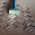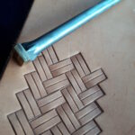 Razidlo s plastickým motivem rovných řemínků pro zdobení velkých ploch na jezdeckých westernových sedlech a jiných výrobcích.