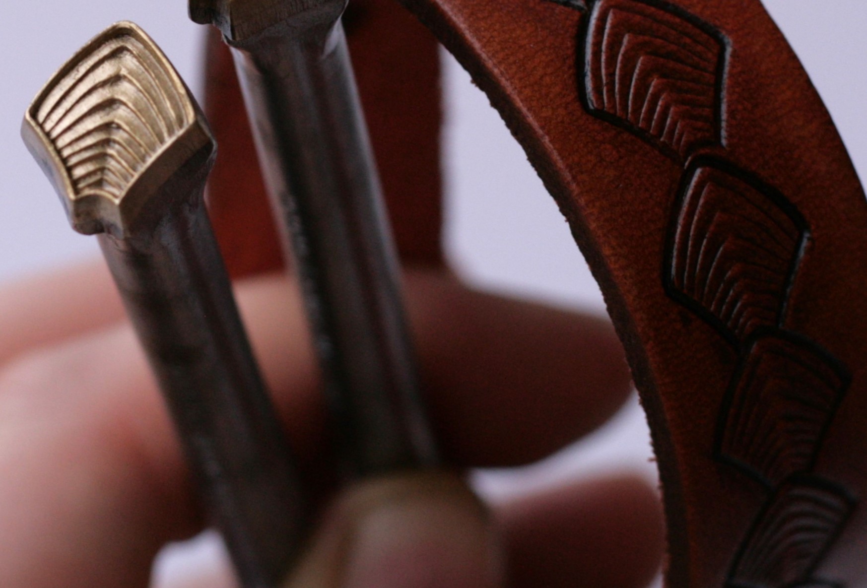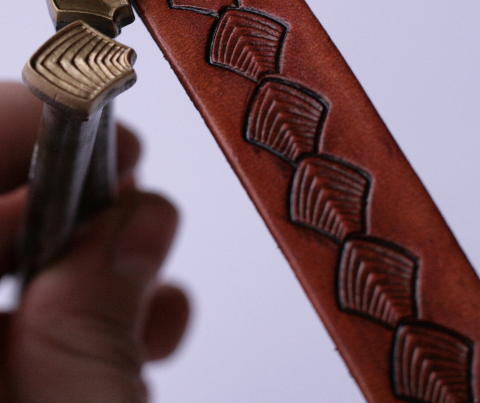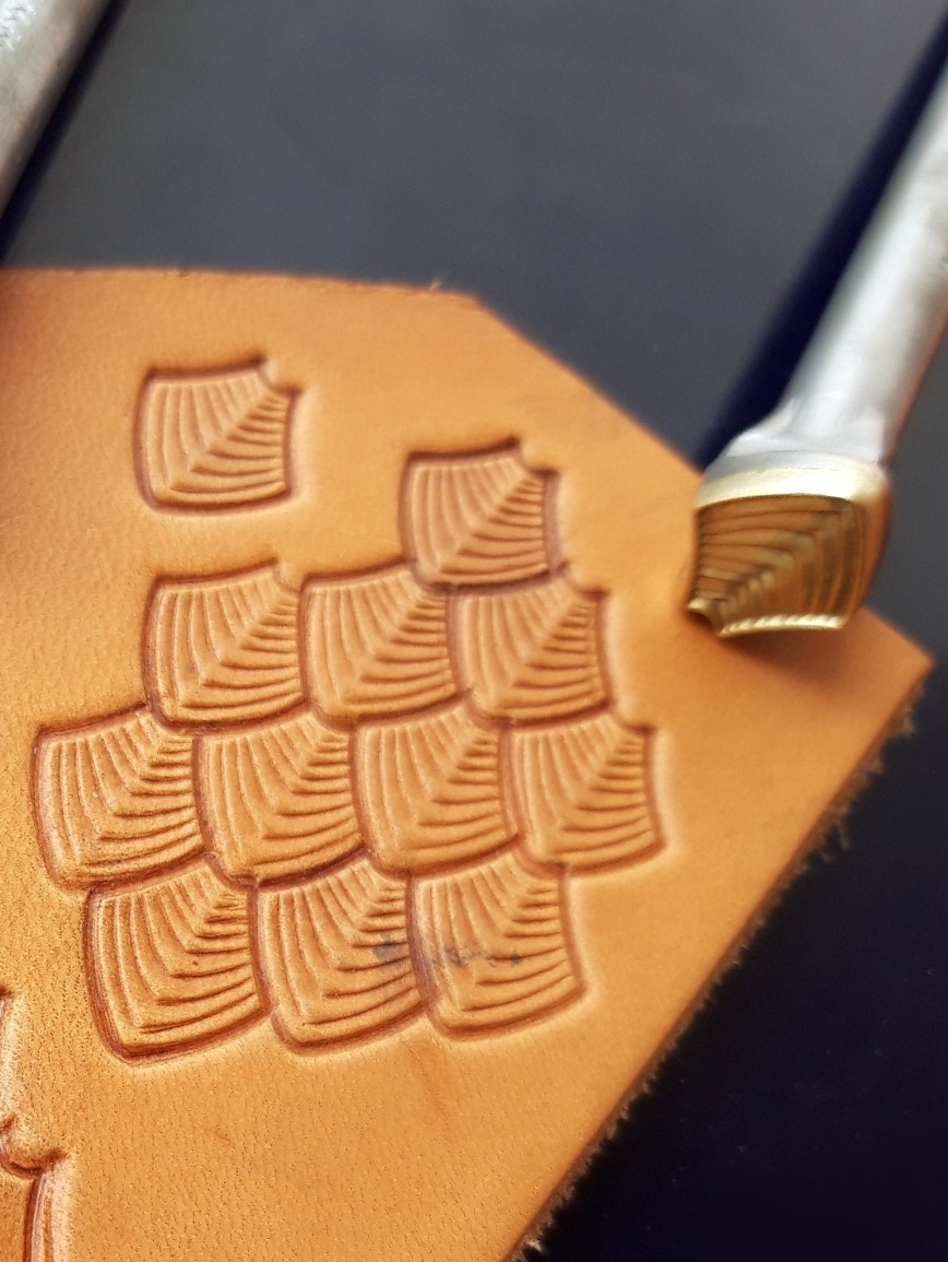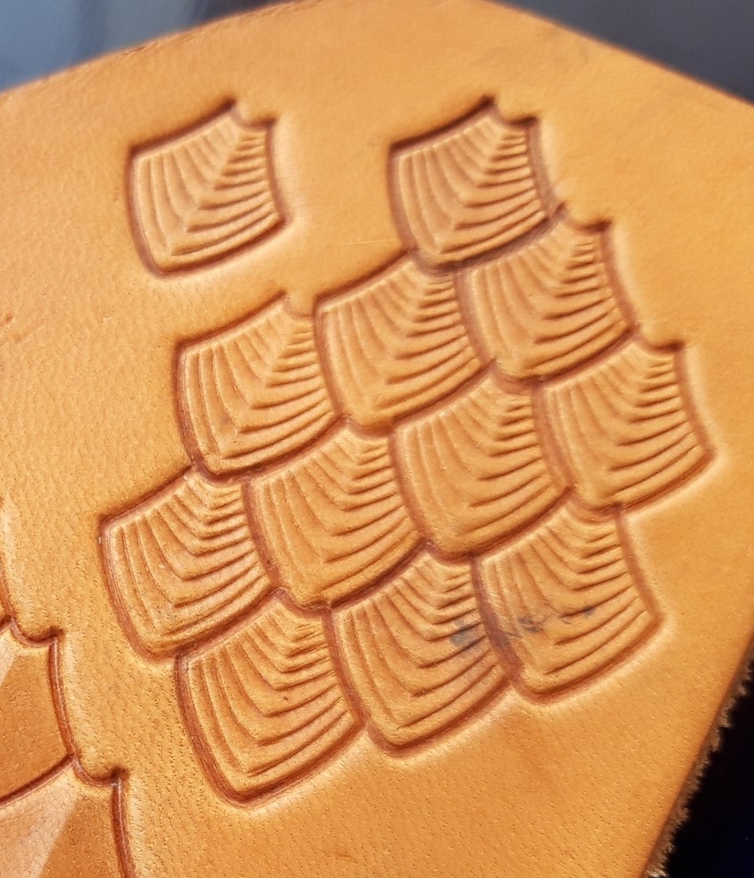 Šupina malá vroubkovaná – raznice pro ruční ražbu do kůže s plastickým motivem šupiny. V opakování vytváří okraj nebo plochu připomínající kůži draka, hada, ryby či jiných bájných tvorů.