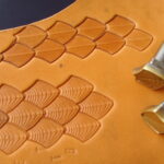 Dvě velká razidla s plastickým motivem šupiny, který v návaznosti vytváří okraj či plochu připomínající kůži draka, ještěra, hada, ryby a jiných fantastických zvířat. Jedno razidlo je hladké a druhé vroubkované. Je možné je v ploše kombinovat nebo vytvořit dvě různé plochy či okraje.