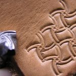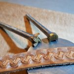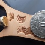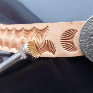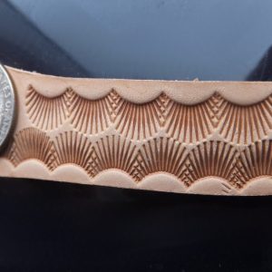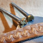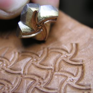 Košík a vějíř 2 razidla – sada dvou razidel do kůže s motivy pletence košíku a vějíře, ze kterých jde kombinovat zajímavý ornament. Razidla je možné použít i samostatně, vějíř na doplnění jiných motivů či tvorby okraje a košík na celoplošné zdobení. Motivy jsou z mosazi na ocelovém trnu. Velikosti otisků jsou 11 x 11 mm a 10 x 9 mm.