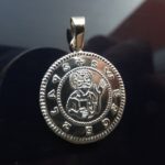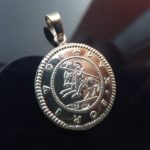 Umělecká replika stříbrné české mince z 11.-12. století, s naletovaným očkem a šlupnou na zavěšení.