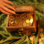 Mince jsou z odolné, silné lepenky se zlatou patinou. Vypadají jako kovové. Průměr 26 mm.