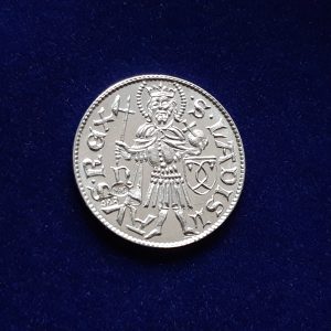 Umělecká replika dukátu Matyáše Korvína, uherského a chorvatského krále a českého spolukrále (1458-1490) – raženo do stříbra