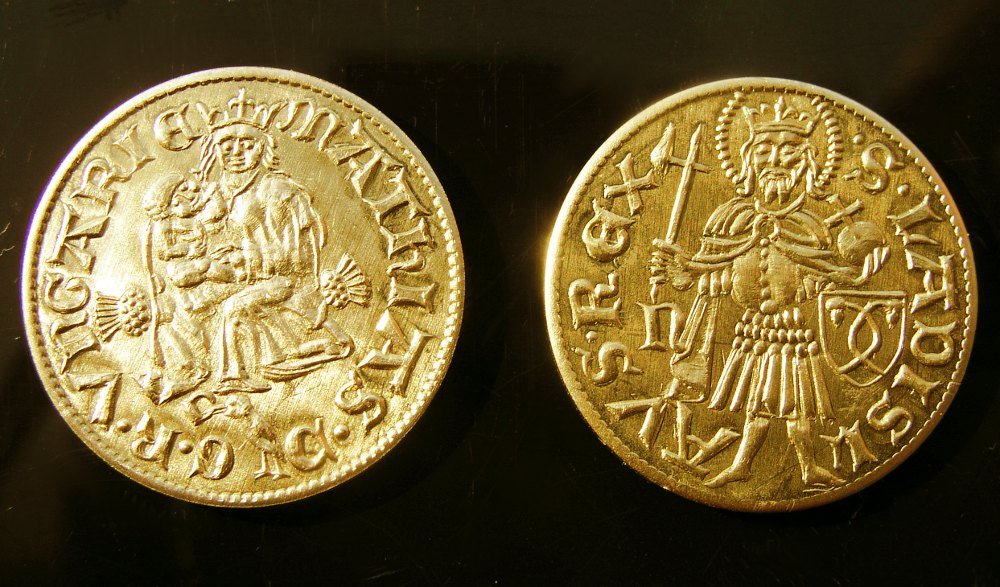 Dukát Matyáše Korvína replika. Umělecká ražba repliky dukátu uherského a chorvatského krále a českého spolukrále (1458-1490).