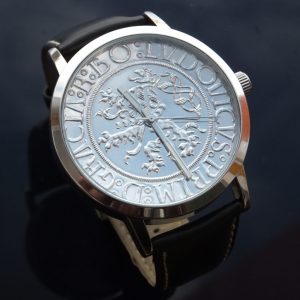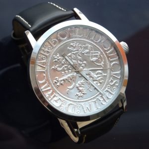 Navrhli jsme a pro Vás připravili limitovanou sérii hodinek Timemaster s ciferníkem v podobě Jáchymovského tolaru. Je možné vyrobit i variantu s druhou stranou mince – sv. Jáchymem.