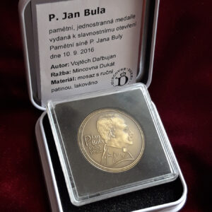 Jednostranná, mosazná, pamětní medaile P. Jana Buly byla vydána 10. 9. 2016 k příležitosti otevření jeho pamětní síně.