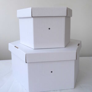 Krabice na klobouky šestihran bílá – vyrábíme na objednávku od 50 kusů, cca do měsíce, přičemž si můžete nakombinovat velikosti, např. 20 malých a 30 velkých krabic. Napište nám kolik kusů potřebujete a dáme Vám individuální cenovou nabídku. Cenu za dopravu Vám nabídneme podle množství a velikosti.