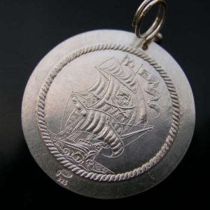 Medailon Aztécký kalendář s lodí je jedinečný, originální přívěsek ražený ze stříbra z vlastních, ručně rytých raznic.