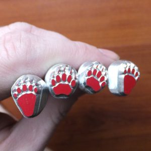 Sada čtyř razidel do kůže s motivy medvědích stop (pravé a levé).