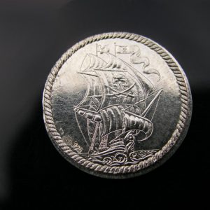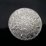 Aztécký kalendář a loď mince ražená ze stříbra Ag 925/1000 z ručně ryté raznice.