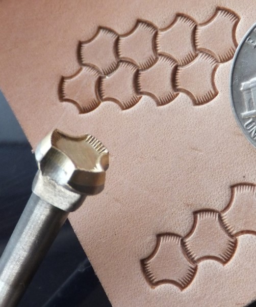 Velikost celého nástroje je 90 x 8 x 8 mm. Motiv je z mosazi na ocelovém držáku.