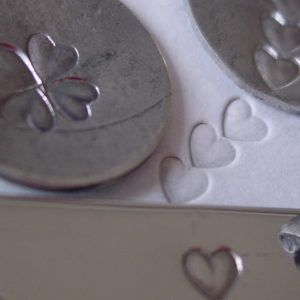 Srdce 5 mm razidlo do kovu je ocelové razidlo s plastickým motivem srdce o velikosti 5 x 5 mm. Vyrobili jsme jej pro Vaše přáníčka, štítky či šperky. Chcete-li jen obrys, dejte menší ránu, při opakovaném úderu vyrazíte plastický otisk srdce. Srdíčko skládejte do čtyřlístků, kytiček, nebo tvořte řady na náramcích či náušnicích. Zdobte své zápisníky nebo výrobky z kůže.