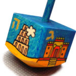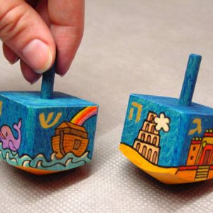 Drejdl – stará židovská hračka s hebrejskými písmeny a biblickými motivy na jednotlivých stranách. Boky jsou ručně malované.